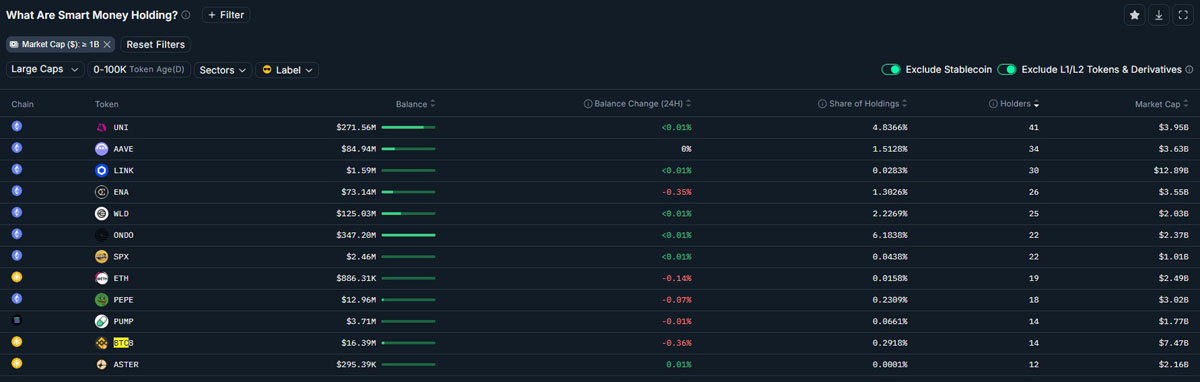 与此同时,数据显示,在周二,“聪明资金”交易员持有量排名第11位的是币安发行的锚定比特币代币(BTCB),紧随一些更具投机性的迷因币,如Pump.fun(PUMP)代币和Pepe(PEPE)迷因币之后。