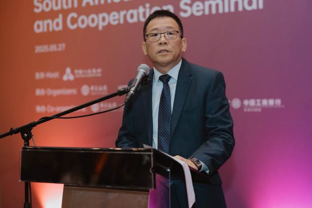 中国驻南非大使馆公使郑冰开在致辞中指出,中南经贸合作成果丰硕、前景广阔,金融领域交流日益紧密,希望各方持续加强务实合作,推动中非合作高质量发展。2025年是中国银行约翰内斯堡分行成立25周年暨担任南非人民币清算行10周年,中国银行约翰内斯堡分行行长张朝阳在致辞中表示,中国银行约翰内斯堡分行将继续立足南非、辐射非洲,为中南、中非经贸合作贡献更大力量。
