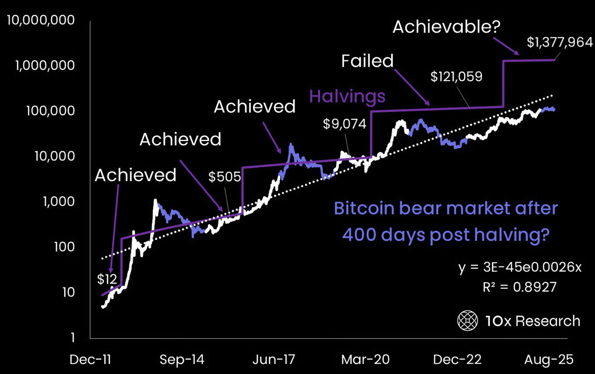 根据10x的说法,尽管有许多关于市场周期延长的呼声,仅凭前四轮市场周期得出结论“极具争议”。