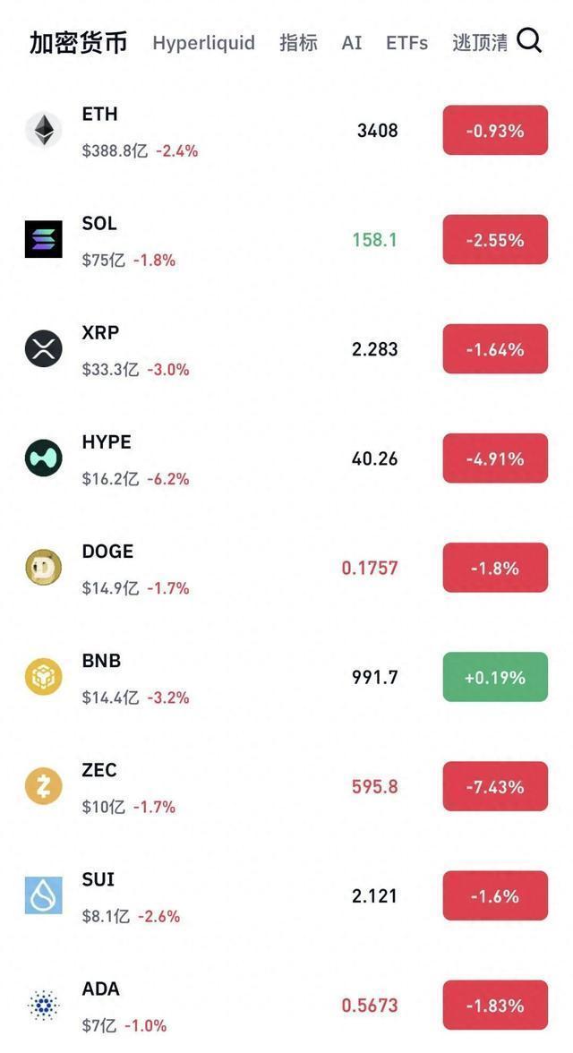 其他主要虚拟货币也经历了类似的波动。以太坊下跌近1%,HYPE币下跌近5%,狗狗币下跌近2%。据CoinGlass数据,最近24小时内,全球共有近14万人因加密货币爆仓。