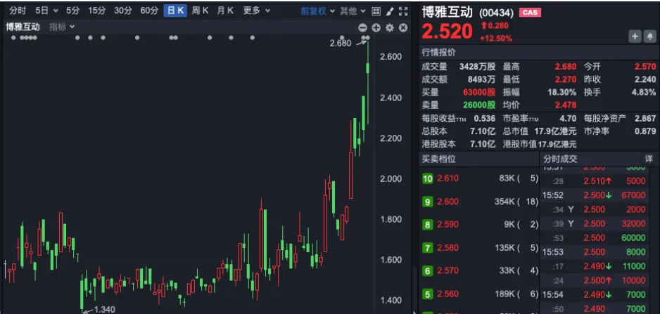 博雅互动是一家游戏公司,于2004年创立,公司产品以网络棋牌类为主。2013年11月12日,博雅互动在香港联交所上市。
