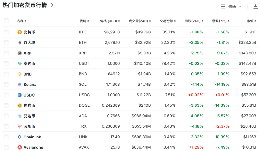 截至发稿,加密市场跌幅收窄,比特币跌24小时跌1.88%,以太坊24小时跌2.35%。