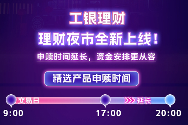 近日,工银理财上线了“理财夜市”服务,协同工商银行开通了首批3款理财产品的夜间购买服务。此次上架的3款产品的申赎时间从交易日9:00-17:00延长至20:00前,只要在交易日20:00前购买均视为当日申购。
