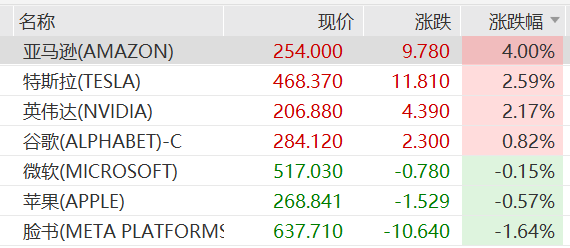 美国大型科技股涨跌互现,万得美国科技七巨头指数上涨1.04%。个股方面,亚马逊涨4%,创历史新高。消息面上,据财联社报道,亚马逊网络服务(AWS)和OpenAI宣布建立多年战略合作伙伴关系,提供AWS世界一流的基础设施,以立即开始运行和扩展OpenAI的核心人工智能(AI)工作负载。