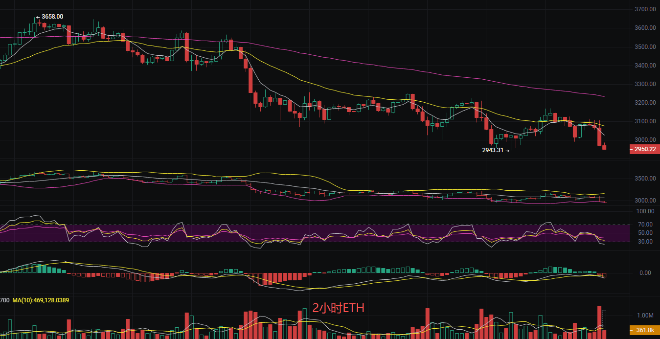 发稿前以太坊现价2947,丽盈观察目前盘口以太ETH低位筑底阶段,技术面显示价格接近强支撑位2943,并伴随看涨吞没形态的出现,暗示潜在反转可能。然而,均线系统仍呈空头排列,价格位于短期和长期均线之下,动能减弱,表明市场趋势尚未完全转强,K线明显的空头主导。