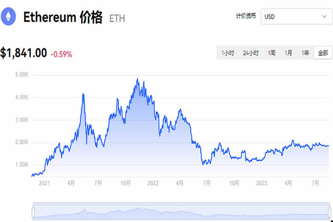 在过去两年多的时间里,以太坊价格循序渐进地增长。尽管加密货币市场的环境仍然不稳定,但以太坊的价格在过去的两年中经历了一些良好的增长。到2021年11月份,以太坊的价格约为4800美元顶峰。