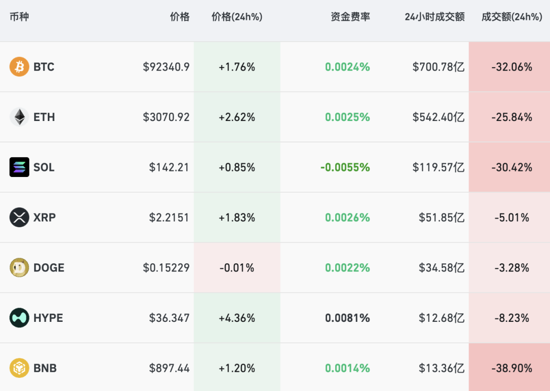 加密货币方面,截至北京时间22:00左右,比特币升破9.2万美元,过去24小时内比特币涨近1.8%,以太坊涨至超3070美元,涨幅2.6%;全市场超8.8万人被爆仓,爆仓总金额约1.9亿美元。